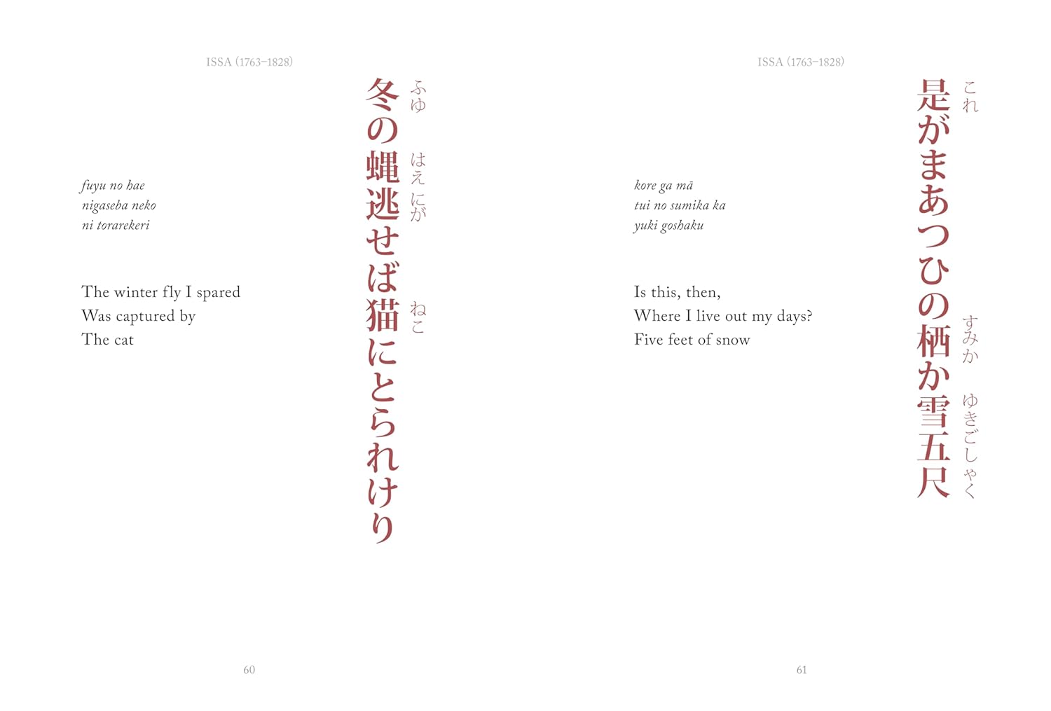 Haiku – seventeen-syllable poems that evoke worlds despite their brevity – have captivated Japanese readers since the seventeenth century. Today the form is practiced worldwide and has become established as part of our common global heritage. This beautiful traditionally hand-bound volume presents new English translations of classic poems by the four great masters of Japanese haiku – Matsuo Basho, Yosa Buson, Kobayashi Issa, and Masaoka Shiki – accompanied by both the original Japanese and a phonetic transcription.With a timeless design, Haiku is an expert introduction and celebration of one of the most beautiful and accessible forms of poetry in the world.