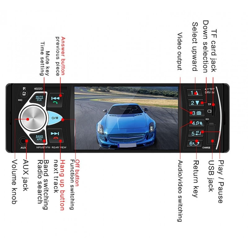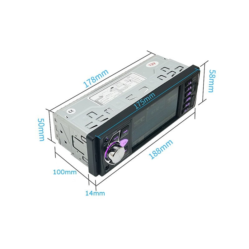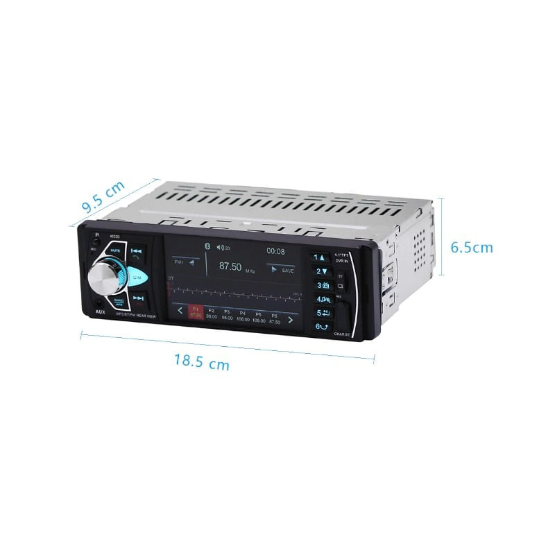 Radio Bluetooth Auto: Functie hands-free pentru preluarea apelurilor, streaming wireless pentru muzica, controlabil prin telecomanda.MP3 auto cu RDS: suporta radio FM/AM cu RDS cu mai multe moduri de selectie a canalelor.Radio Bluetooth Auto: Functie hands-free pentru preluarea apelurilor, streaming wireless pentru muzica, controlabil prin telecomanda.Functii:Display de 4.1" inch de inalta definitiePersonalizare interfata in 7 culoriSlot pentru card micro SD/MMC, port USB 2.0Suporta extinderea memoriei cu pana la 8GBSuporta formate video RMVB / RM / FLV / 3GP / MPEG / DVIX / XVID / DTA / VOB / AVISuporta formate audio MP3 / WMA / WMV / OGG / APE / ACC / FLACHD FMBluetooth 2.