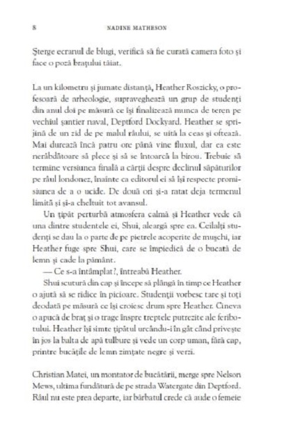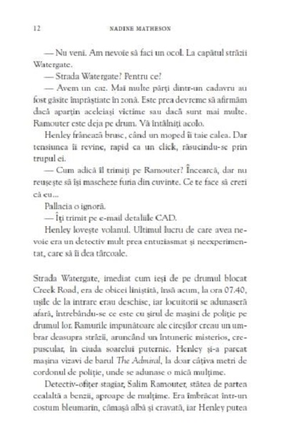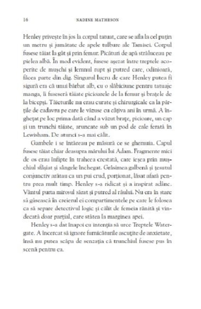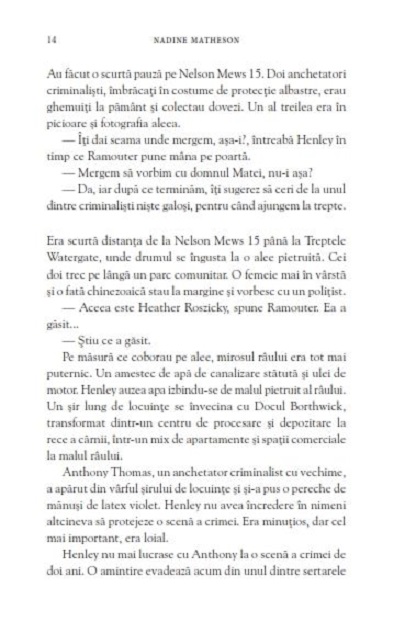 UN NOU CRIMINAL IN SERIE TERORIZEAZA LONDRACand mai multe cadavre incep sa iasa la iveala de-a lungul raului Tamisa, detectivul-inspector Henley se teme ca este opera lui Peter Olivier, celebrul criminal. Numai ca nu poate fi el. Olivier se afla deja in spatele gratiilor si chiar Henley a fost cea care l-a pus acolo.Sperase ca nu va trebui sa-i mai vada vreodata fata, dar Henley stie ca Olivier ar putea fi cea mai buna sansa pe care o are de a-l opri pe criminalul-imitator. Dar cand Olivier afla despre noile crime, s-o ajute pe Henley este ultimul lucru pe care il are in minte... Asa ca evadeaza.Va fi nevoie de un criminal pentru a prinde alt criminal? Din acest moment, orice se poate intampla.