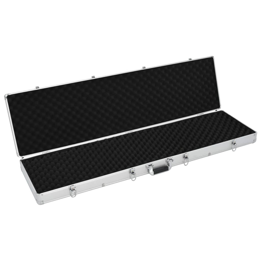 Folositi aceasta valiza de arma pentru necesitatile de depozitare sau transport ale armelor dvs.! Realizata din lemn cu un strat de ABS si margini din aluminiu, cutia este foarte robusta si rezistenta. Interiorul carcasei este prevazut cu un strat superior de spuma, rezistent la socuri si adecvat transportului.In plus, carcasa pentru arme poate fi blocata pentru un plus de securitate.Culoare: ArgintiuMaterial: Aluminiu, ABS si lemnMaterial interior: SpumaDimensiuni: 134 x 35 x 12 cm (L x l x i)Colturi intarite rotundeCu incuietoare (2 chei incluse)