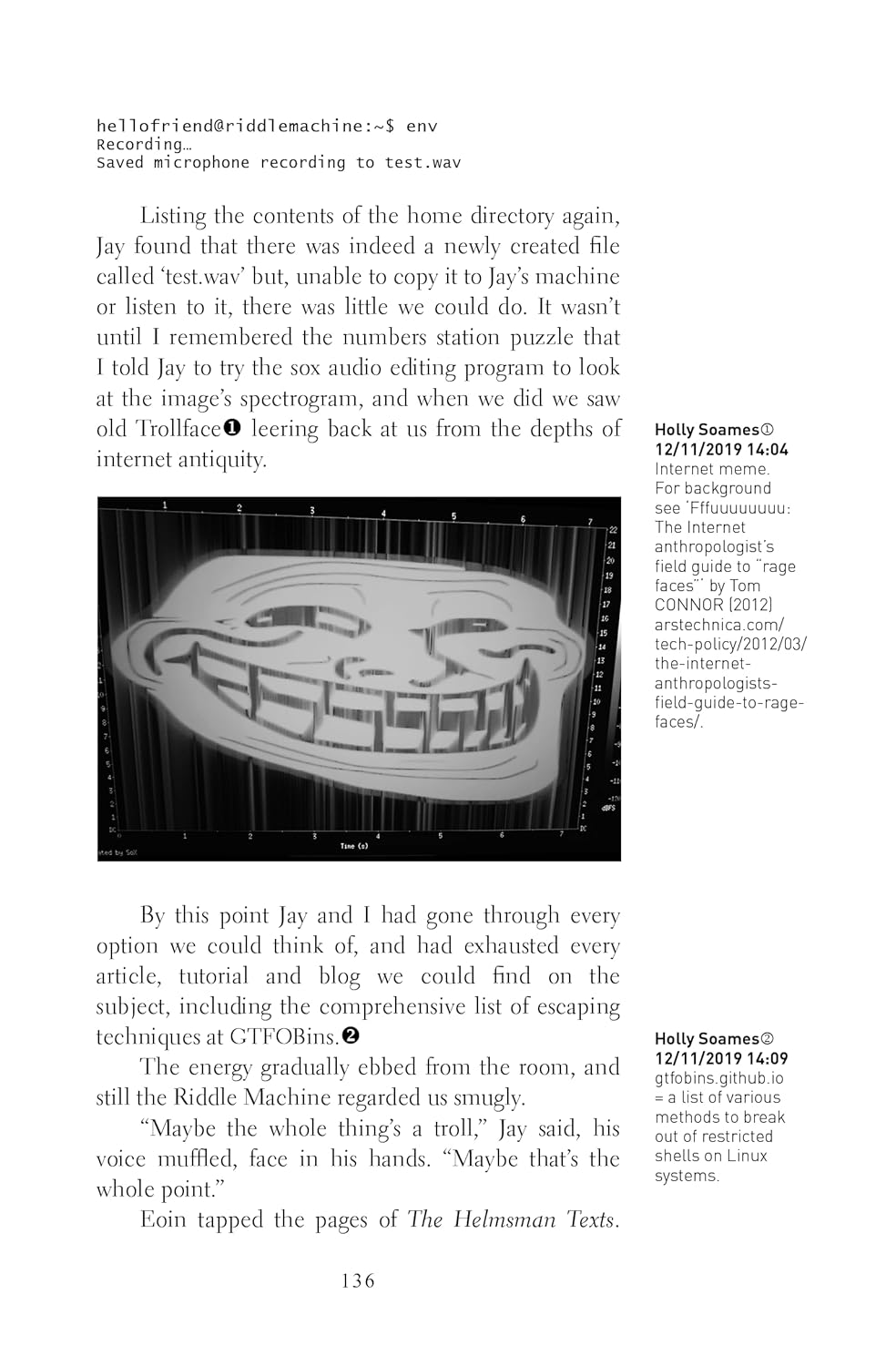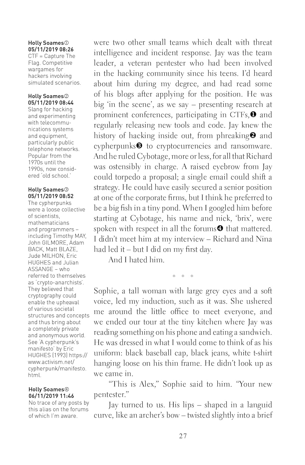 A terrifying and unputdownable horror-thriller novel of fiendish puzzles, compelling mysteries and paranoia about an enigmatic hacker, a deadly online game, and a cyber weapon that makes people go insane. Perfect for readers of Paul Tremblay, Neal Stephenson and Mark Z Danielewski's House of Leaves, and the people who just have to know the answer.Alex Webster is an ethical hacker who, like most hackers, prefers questions to answers.So when she and a colleague, Jay Morton, stumble across a mysterious game created by a shadowy figure known as The Helmsman, they are instantly hooked.As they solve increasingly bizarre puzzles and uncover The Helmsman's deranged manifesto, they are pursued by a sinister group known only as XXX XXXXXXX XXXXXX, who will do anything to stop them uncovering the Basilisk, a cognitive weapon which makes anyone who understands it lose their mind.When Jay disappears, as they hone in on the truth of the Basilisk, Alex is left trying to piece together what’s happened to her friend, escape the awful smiling glitch people stalking her every move, and solve The Helmsman’s final puzzle.