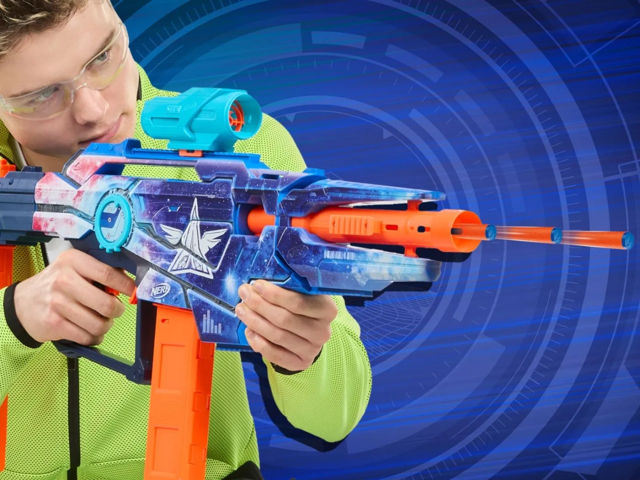 Da viata jocurilor video si personalizeaza-ti pistolul suprem! Pistolul Nerf Loadout Galactic Commander dispune de trei moduri de tragere semiautomat, rafala cu 3 sageti si complet automat. Pachetul include o luneta, un stoc de incarcator si un accesoriu de teava, toate interschimbabile cu alte pistole Loadout, plus doua incarcatoare cu 18 sageti. Echipat cu legendarul skin Galactic Commander, acest pistol iti va supraalimenta bataliile spatiale epice.Pistolul Nerf Loadout Galactic Commander vine cu 48 de sageti Nerf N1 conceput pentru precizie, viteza si distanta extrema. Construieste-ti stocul de pistole Nerf Loadout pentru optiuni de personalizare nelimitate (fiecare se vinde separat, in functie de disponibilitate). Sagetile Nerf N1 sunt compatibile numai cu pistolele de sageti Nerf N1.
